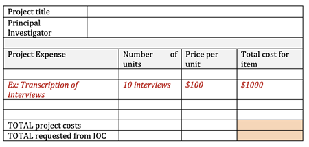 Include a table with a line item budget for your project including the total amount requested from the Institute of Coaching. (Please use budget template found here: https://instituteofcoaching.org/sites/default/files/downloads/Budget-Template.xlsx).